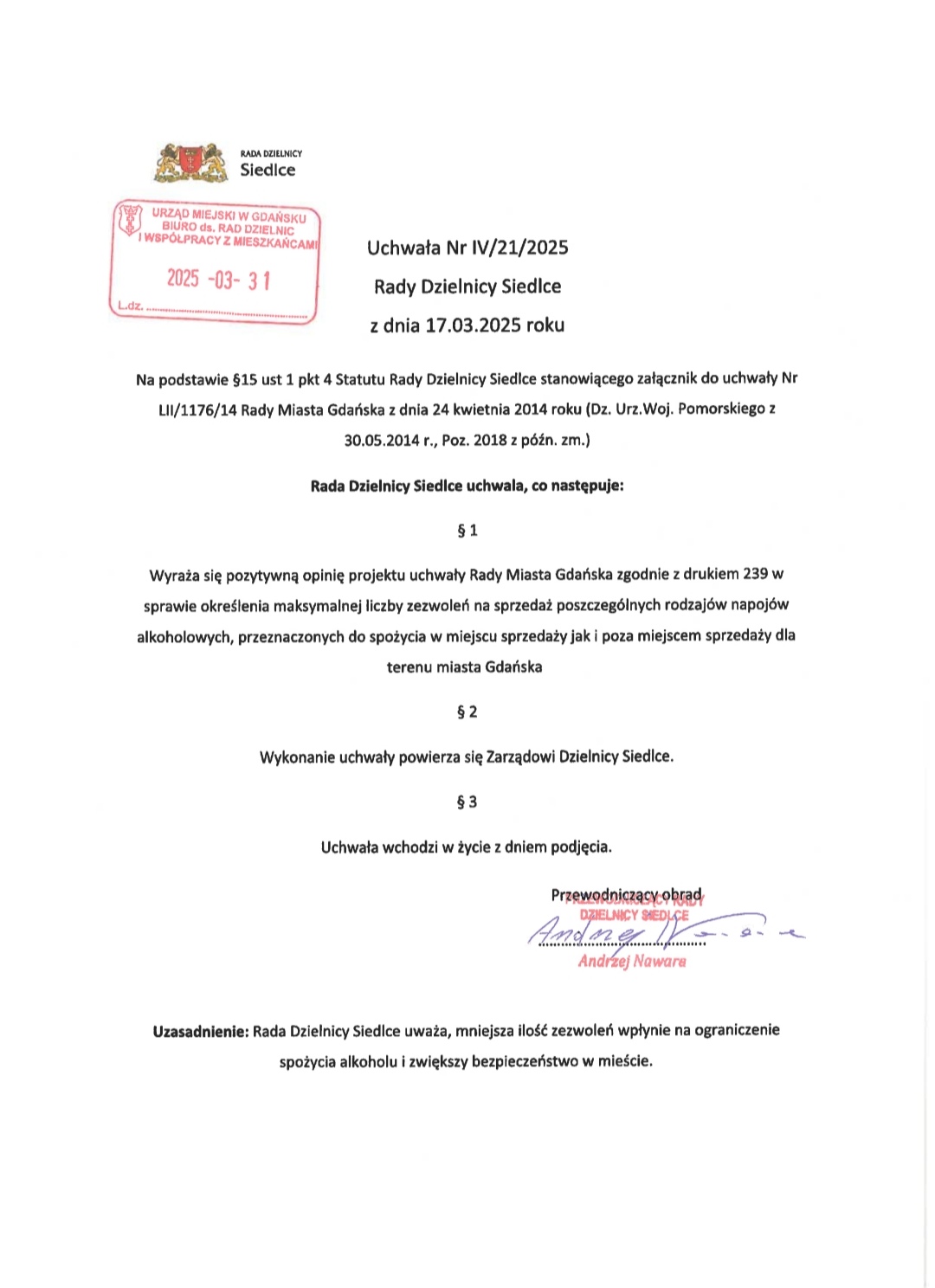 Uchwała Nr IV/21/2025 Rady Dzielnicy Siedlce