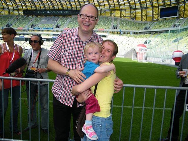 Zdjęcie zrobiłem 6 sierpnia 2011 r. podczas dnia otwartego gdańskiego stadionu. Pan prezydent stał i z kimś rozmawiał. Zapytałem, czy możemy zrobić z nim zdjęcie, a on bez wahania i z uśmiechem się zgodził. Chciał wziąć córkę Paulinę na ręce, ale ta “strzeliła focha :-)” i się odwróciła (zostając na rękach żony pana Roberta - Anny - red.). Cała ta sytuacja nas i pana prezydenta rozbawiła.
