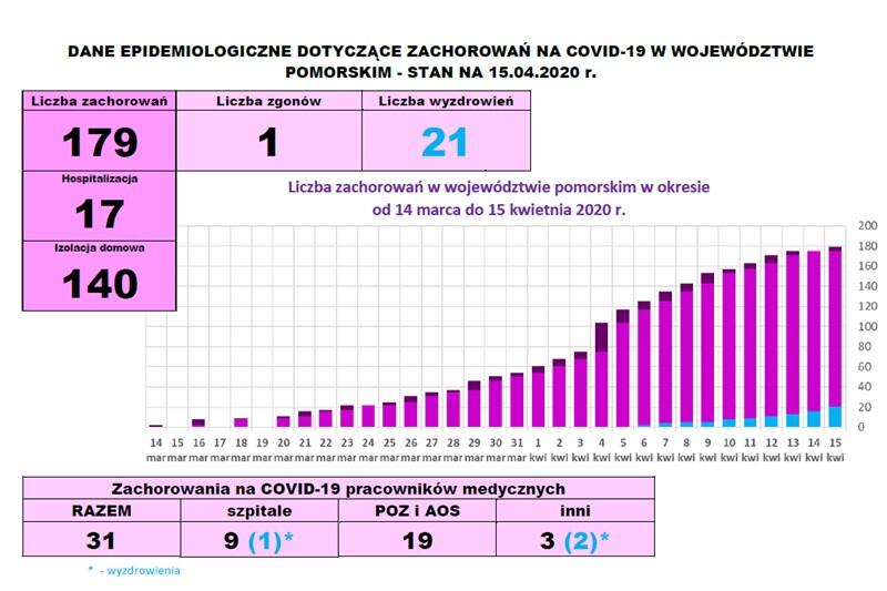 Od początku epidemii na Pomorzu zdiagnozowano 215 przypadków zakażenia/w tym dwa zgony