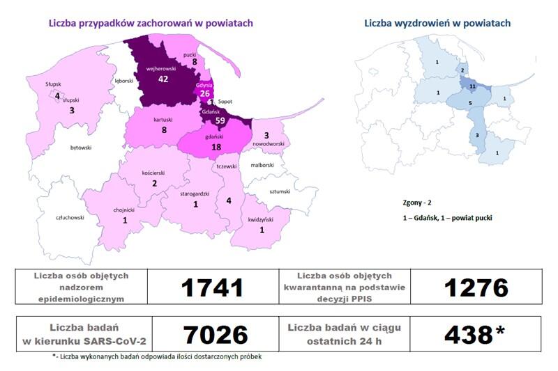 Od początku epidemii na Pomorzu zdiagnozowano 219 przypadków zakażenia/w tym dwa zgony