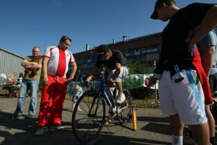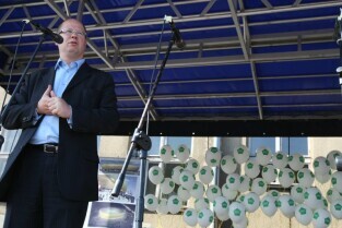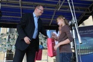 Festyn w Gdańsku Letnicy z okazji 1000 dni do UEFA EURO 2012 w Polsce. Nz. Prezydent Gdańska Paweł Adamowicz odwiedzający festyn