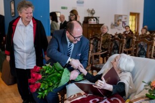Pani Helena Mołoń - solistka Opery i Filharmonii Bałtyckiej w Gdańsku, obchodzi setne urodziny. Gdańsk ul. Polanki, Dom Pomocy Społecznej.