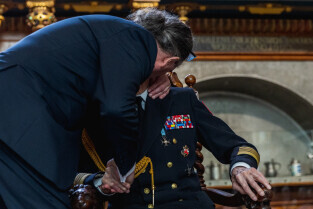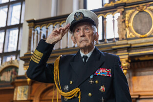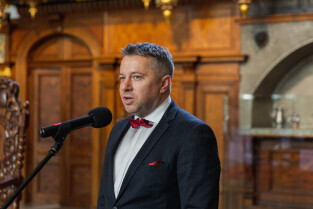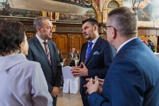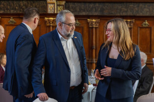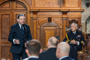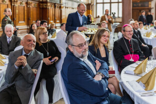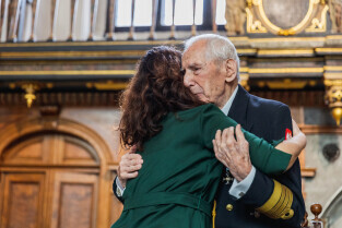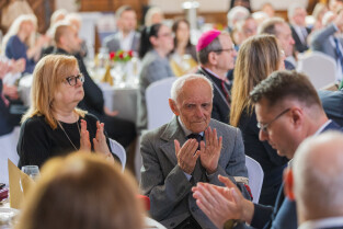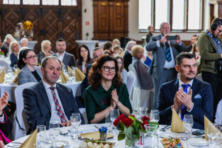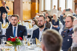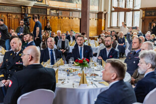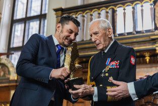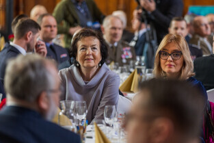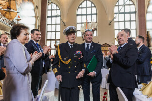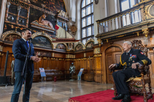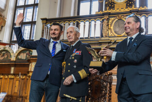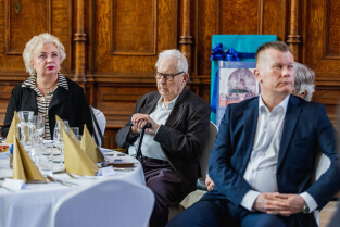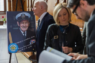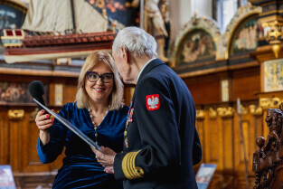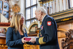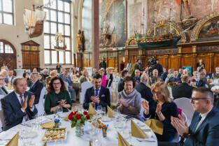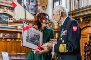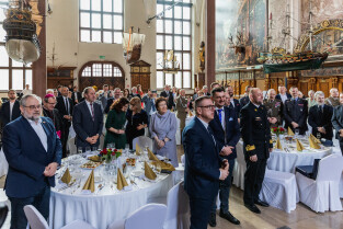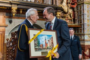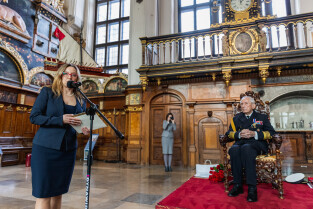 Gdańsk, Dwór Artusa. 100. rocznica urodzin komandora Romana Rakowskiego. Organizatorami uroczystych obchodów 100. urodzin Romana Rekowskiego jest Aleksandra Dulkiewicz, prezydent Gdańska i Mieczysław Struk, marszałek województwa pomorskiego.