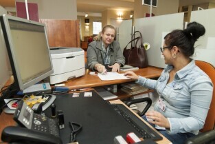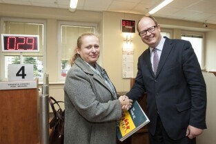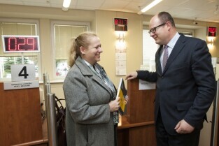Stutysięczny klient usług on-line Urzędu Miejskiego w Gdańsku w Zespole Obsługi Mieszkańców nr 3 przy ul. Nowe Ogrody. Klientem okazała się Pani Izabela, która otrzymała książkę z dedykacją od Prezydenta Gdańska Pawła Adamowicza