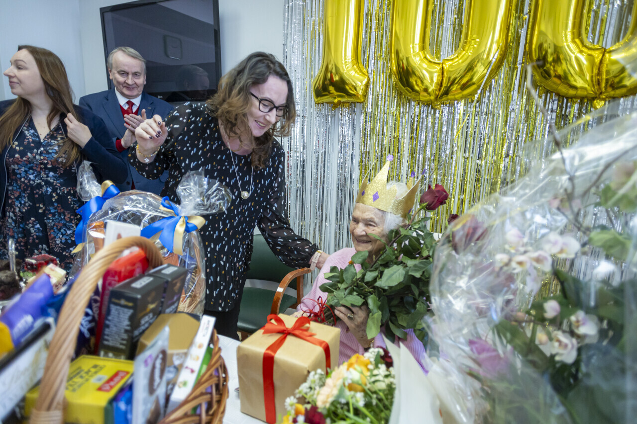 Gdańsk. W środowiskowym Domu Samopomocy SPIR Sternicza odbyła się impreza urodzinowa z okazji 100 urodzin pani Aldony Rodziewicz