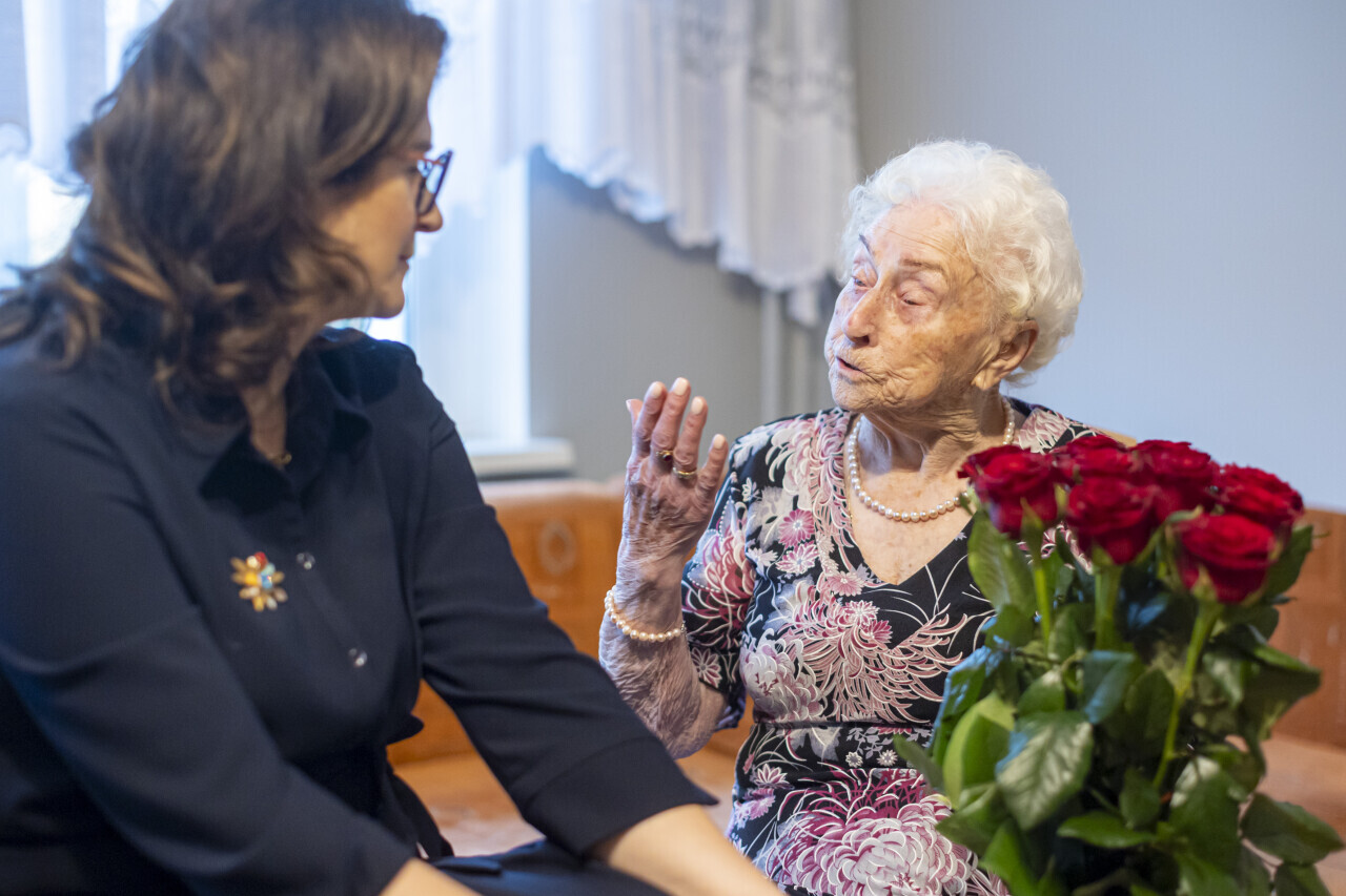Gdańsk. Z okazji 100. urodzin jubilatkę Helenę Kurpet odwiedziała Prezydent Aleksandra Dulkiewicz
