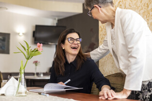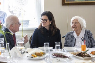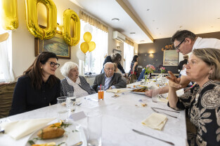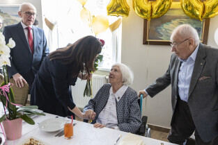 Prezydent Aleksandra Dulkiewicz odwiedziła panią Felicję Krzymińską, która wraz z rodziną obchodziła swoje setne urodziny w Hotelu Logos. Prezydent złożyła jubilatce życzenia, przekazała jubileuszowy list i prezenty oraz wpisała się do księgi pamiątkowej przygotowanej z okazji 100 jubileuszu pani Felcji
