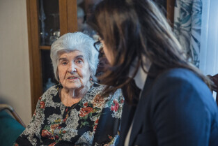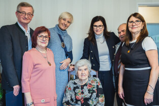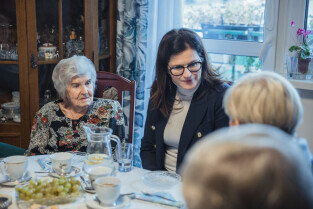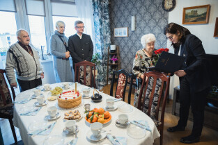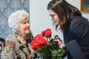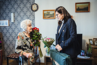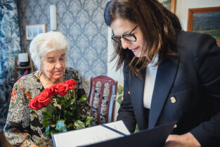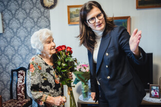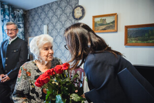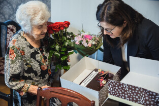 Gdańsk. 102. urodziny Pani Ireny Świderskiej. Życzenia urodzinowe solenizantce złożyła prezydent Gdańska Aleksandra Dulkiewicz