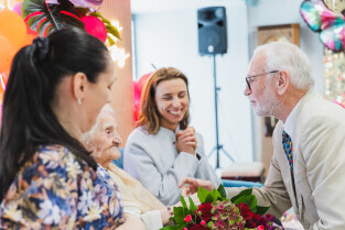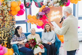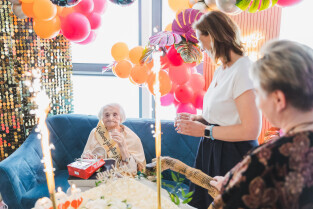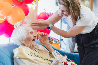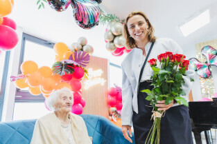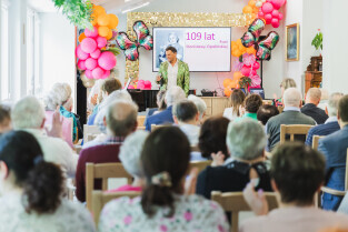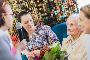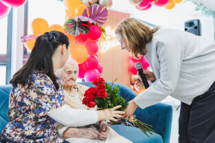 Gdańsk, ul. Polanki. 109. urodziny pani Stanisławy Opalińskiej. Solenizantkę odwiedziła Monika Chabior, zastępczyni Prezydenta Gdańska