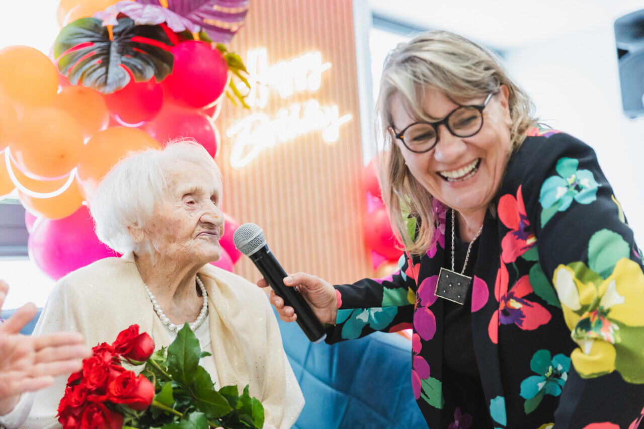 Gdańsk, ul. Polanki. 109. urodziny pani Stanisławy Opalińskiej. Solenizantkę odwiedziła Monika Chabior, zastępczyni Prezydenta Gdańska