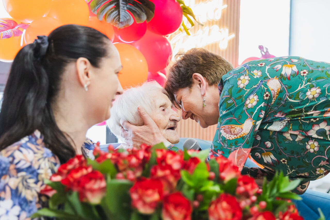 Gdańsk, ul. Polanki. 109. urodziny pani Stanisławy Opalińskiej. Solenizantkę odwiedziła Monika Chabior, zastępczyni Prezydenta Gdańska