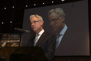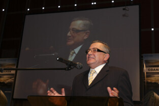 Uroczystość 10-lecia Prezydentury Pawła Adamowicza. Gdańsk, Filharmonia Bałtycka. Nz. prof. Jerzy Limon