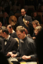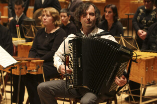 Uroczystość 10-lecia Prezydentury Pawła Adamowicza. Gdańsk, Filharmonia Bałtycka. Nz. Cezary Paciorek występujący z orkiestrą VITA ACTIVIA, w której grają osoby niepełnosprawne i ich opiekunowie