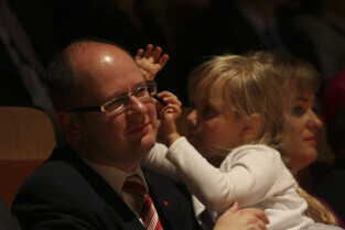 Uroczystość 10-lecia Prezydentury Pawła Adamowicza. Gdańsk, Filharmonia Bałtycka. Nz. Paweł Adamowicz z córką Antoniną