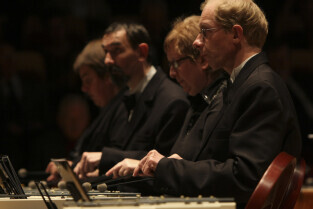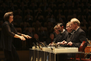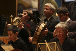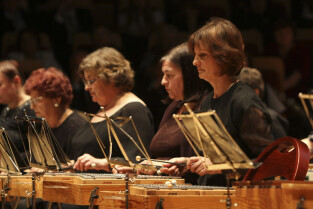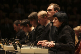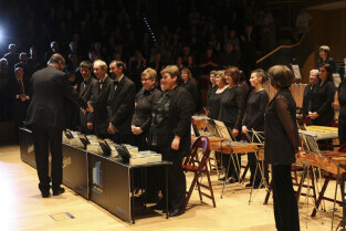 Uroczystość 10-lecia Prezydentury Pawła Adamowicza. Gdańsk, Filharmonia Bałtycka. Nz. występ orkiestry VITA ACTIVIA, w której grają osoby niepełnosprawne i ich opiekunowie