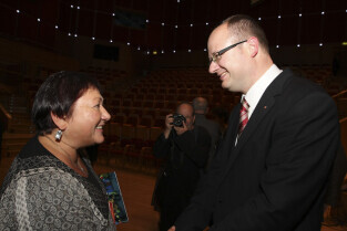 Uroczystość 10-lecia Prezydentury Pawła Adamowicza. Gdańsk, Filharmonia Bałtycka. Nz. Teresa i Ryszard Adamowicz