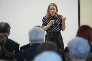 Gdańsk, Dom Pomocy Społecznej "Ostoja". 10-lecie Klubu Seniora. Nz. Radna Beata Dunajewska.