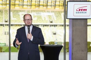 Uroczystość 10. rocznicy powstania Zarządu Transportu Miejskiego. Gdańsk, PGE Arena. Nz. Prezydent Gdańska Paweł Adamowicz