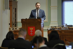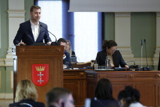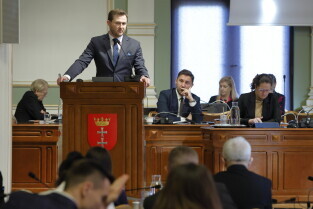 Gdańsk. 12. Sesja Rady Miasta. Nz. Wiceprezydent Gdańska Piotr Grzelak.