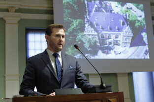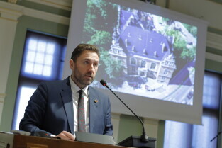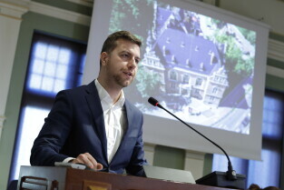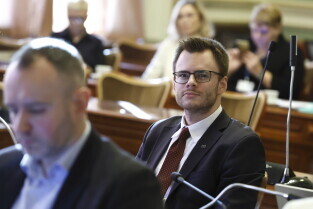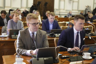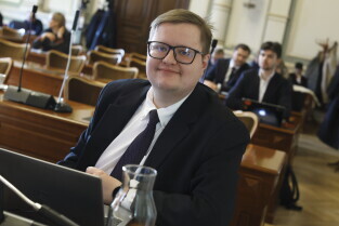 Gdańsk. 12. Sesja Rady Miasta. Nz. Radny Marcin Mickun.