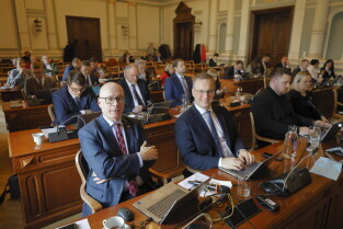 Gdańsk. 12. Sesja Rady Miasta. Nz. Radni: Andrzej Skiba i Przemysław Majewski.