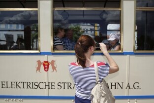 Gdańsk. Festyn z okazji 140-lecia tramwajów w mieście na Targu Węglowym oraz parada zabytkowych i współczesnych pojazdów pomiędzy Urzędem Miejskim, a Bramą Wyżynną. Nz. pracownicy ZKM przy tramwaj Bergmann z 1927 r.