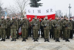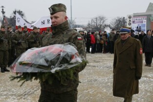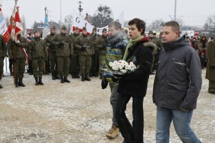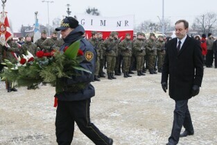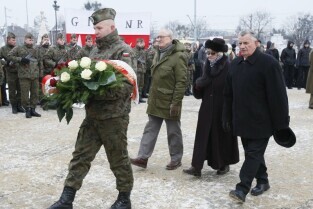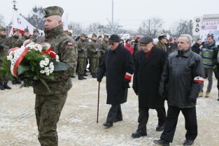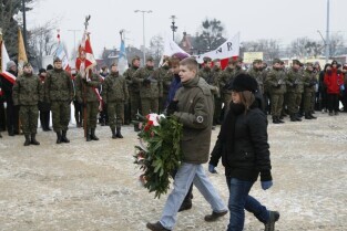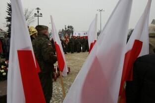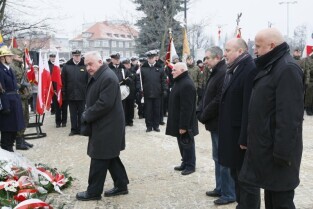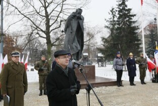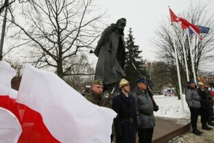 Obchody 143. rocznicy urodzin Marszałka Józefa Piłsudskiego. Gdańsk Strzyża, pomnik Marszałka przy al. Wojska Polskiego