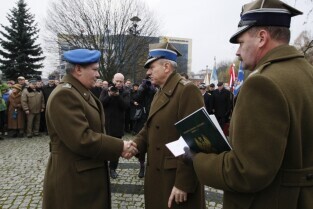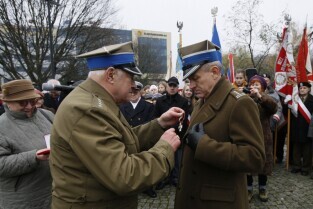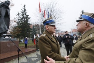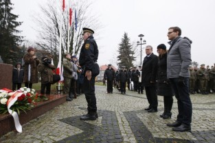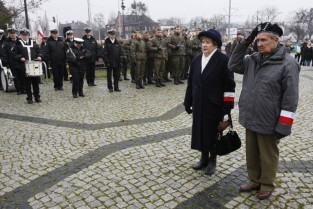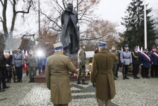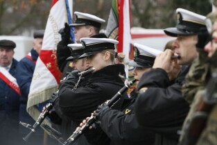 Uroczystości z okazji 145. rocznicy urodzin marszałka Józefa Piłsudskiego. Gdańsk Strzyża, plac marszałka Józefa Piłsudskiego
