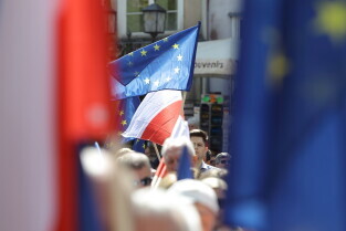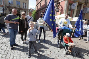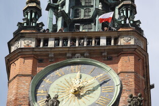 Gdańsk, przedproże Dworu Artusa. 15-lecie wejścia Polski do Unii Europejskiej.