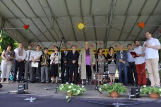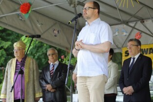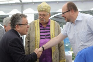 17 Wielki Festyn Rodzinny w Parku Oruńskim. N/Z( z lewej) Przemawia Ambasador Republiki Turcji Yusuf Ziya Ozcan (z lewej) Prezydent Gdańska Paweł Adamowicz.