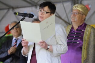 17 Wielki Festyn Rodzinny w Parku Oruńskim. N/Z Przemawia Oksana Denys Konsul Generalny Ukrainy w Gdańsku
