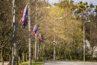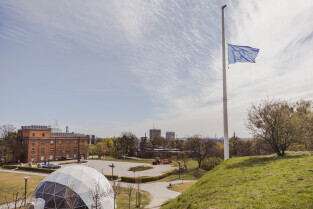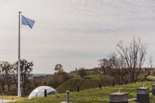 Gdańsk, Hevelianum. 17. rocznica przystąpienia Polski do Unii Europejskiej. Podniesienie flagi europejskiej na Górze Gradowej