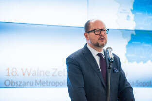 Gdańsk, Stara Wozownia. 18. Walne zebranie członków Obszaru Metropolitalnego. Nz. Prezydent Gdyni Wojciech Szczurek