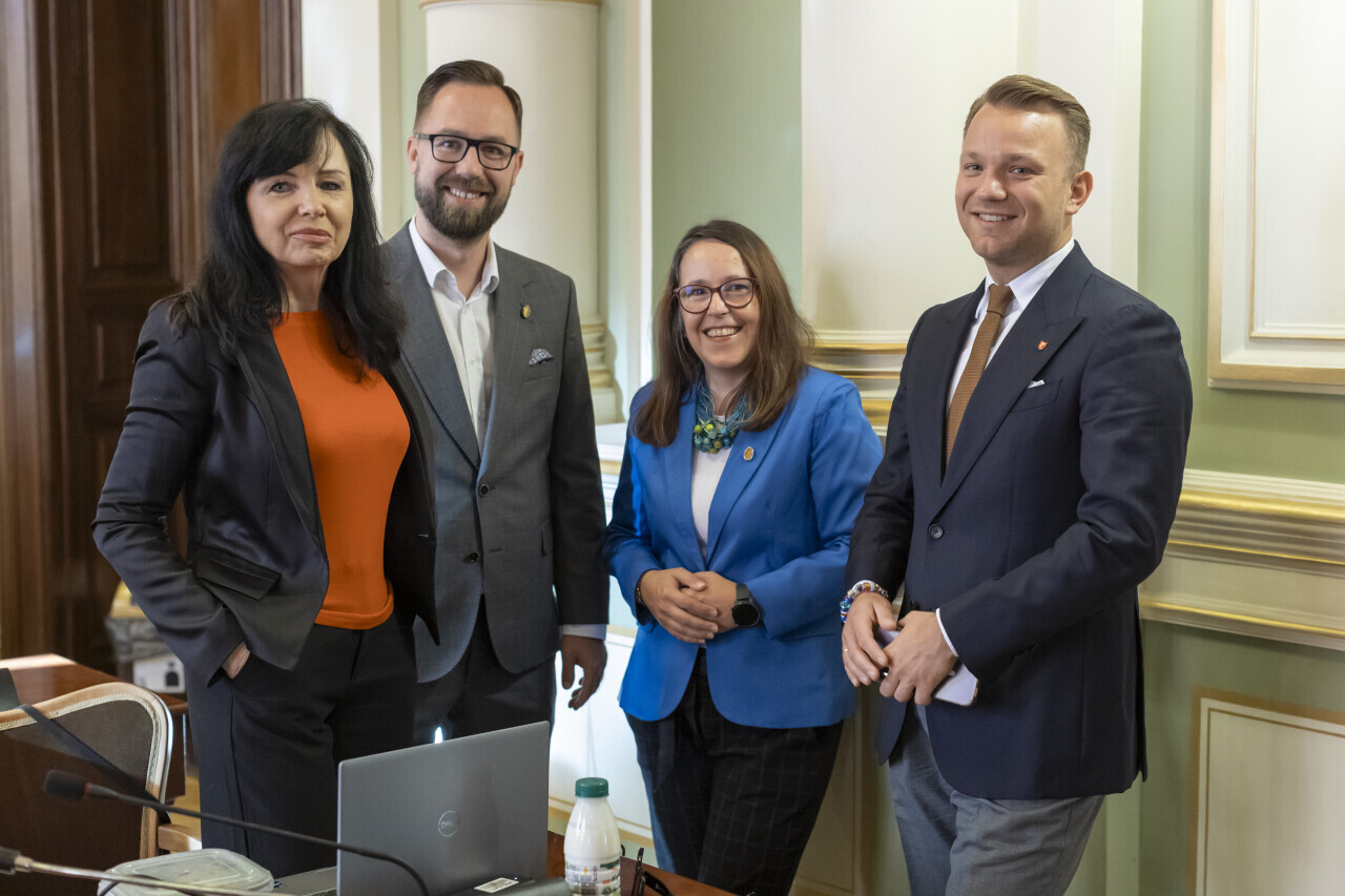 Gdańsk. 19. sesja Rady Miasta Gdańska. Nz. Żaneta Geryk, Krystian Kłos, Kamila Błaszczyk i Mateusz Skarbek.