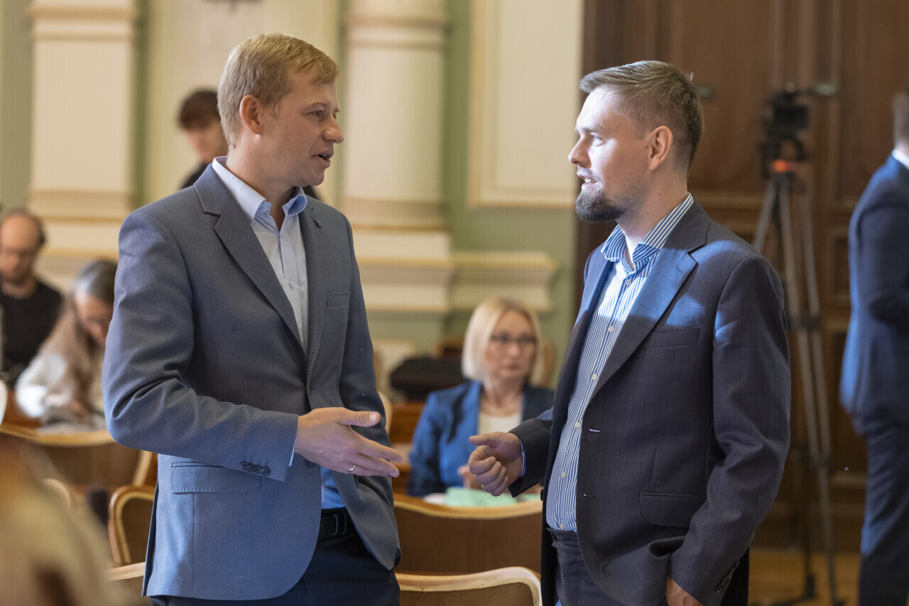 Gdańsk. 19. sesja Rady Miasta Gdańska. Łukasz Świecki i Michał Hajduk.
