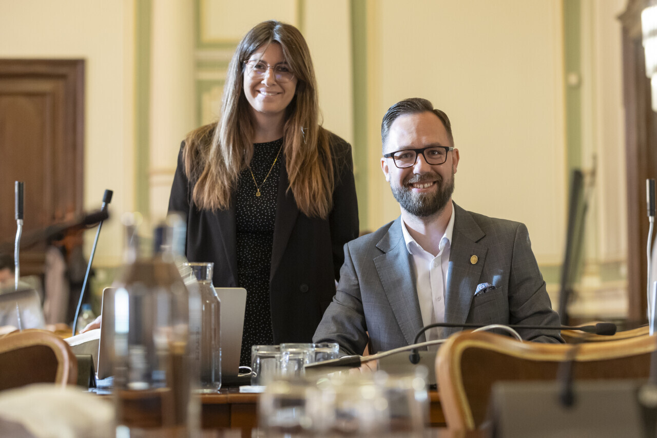 Gdańsk. 19. sesja Rady Miasta Gdańska. Nz. Beata Jankowiak i Krystian Kłos.