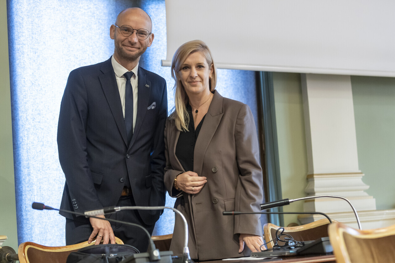 Gdańsk. 19. sesja Rady Miasta Gdańska. Nz. Piotr Kryszewski i Emilia Lodzińska.