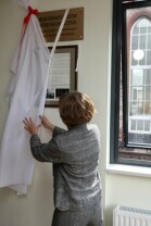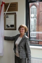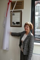 20. lecie Gdańskiej Fundacji Oświatowej i Gdańskiego Liceum Autonomicznego oraz otwarcie obserwatorium astronomicznego. Gdańsk, siedziba GLA, ul. Osiek 12. Nz. prof. Anna Zielińska-Głębocka odsłania pamiątkową tablicę poświęconą patronowi obserwatorium prof. Robertowi Głębockiemu