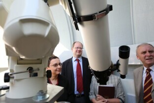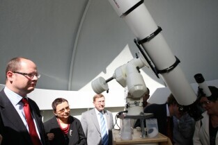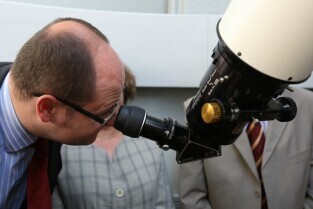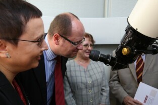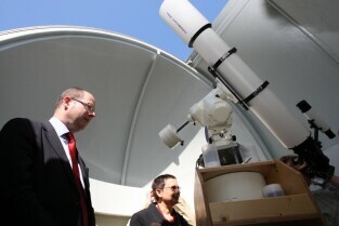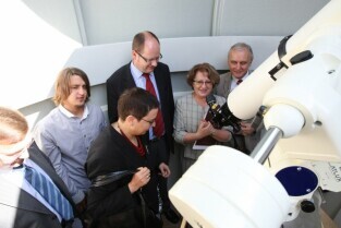 20. lecie Gdańskiej Fundacji Oświatowej i Gdańskiego Liceum Autonomicznego oraz otwarcie obserwatorium astronomicznego. Gdańsk, siedziba GLA, ul. Osiek 12. Nz. Prezydent Gdańska Paweł Adamowicz zwiedza obserwatorium