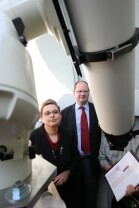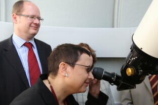 20. lecie Gdańskiej Fundacji Oświatowej i Gdańskiego Liceum Autonomicznego oraz otwarcie obserwatorium astronomicznego. Gdańsk, siedziba GLA, ul. Osiek 12. Nz. Minister Edukacji Katarzyna Hall i Prezydent Gdańska Paweł Adamowicz zwiedzają obserwatorium