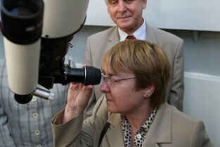 20. lecie Gdańskiej Fundacji Oświatowej i Gdańskiego Liceum Autonomicznego oraz otwarcie obserwatorium astronomicznego. Gdańsk, siedziba GLA, ul. Osiek 12. Nz. Minister Edukacji Katarzyna Hall zwiedza obserwatorium