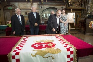 Gdańsk, Dwór Artusa. Uroczystość 20-lecia Stowarzyszenia Nasz Gdańsk oraz przekazania sztandaru organizacji