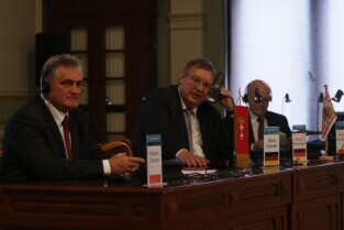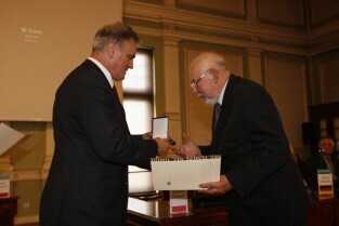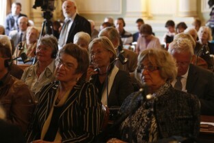 Gdańsk, Nowy Ratusz. Uroczysta sesja Towarzystwa Polska - Niemcy z okazji 20-lecia istnienia organizacji, podczas której wręczono okazjonalne medale i nagrody.