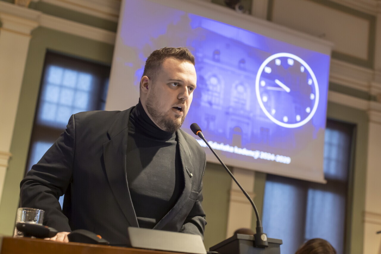 Gdańsk. 22. sesja Rady Miasta Gdańska. Nz. Radny Marcin Makowski.
