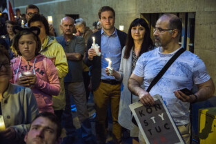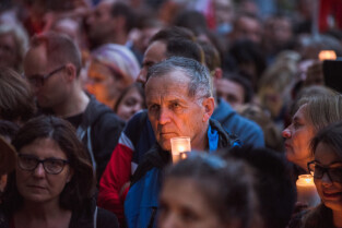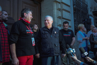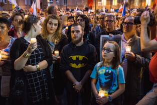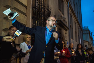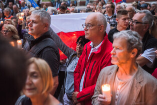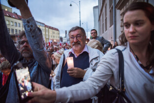 Gdańsk, ul. Nowe Ogrody. 24. lipca - kolejny dzień protestów pod Sądem Okręgowym w Gdańsku. Nz. Paweł Adamowicz Prezydent Miasta Gdańska
