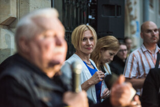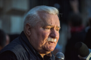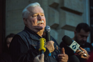 Gdańsk, ul. Nowe Ogrody. 24. lipca - kolejny dzień protestów pod Sądem Okręgowym w Gdańsku. Nz. Lech Wałęsa