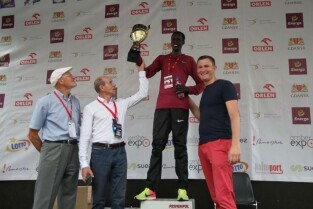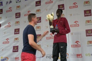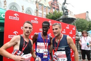 Gdańsk, 25 Międzynarodowy Bieg św. Dominika. Nz. zwycięzca biegu Kenijczyk Silas Mwetich.