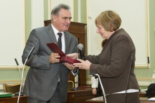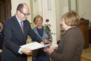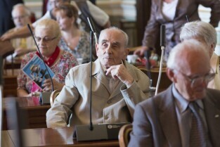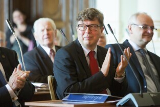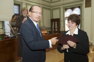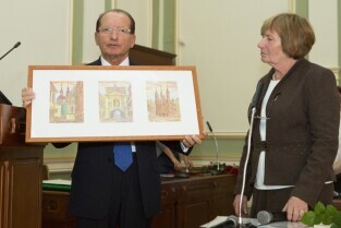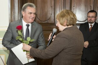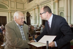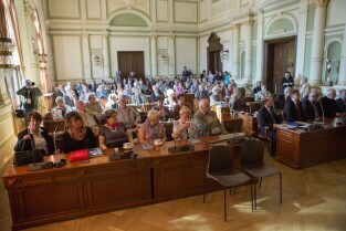 Uroczysta sesja jubileuszowa z okazji 25 lecia Towarzystwa Miłośników Wilna i Ziemi Wileńskiej. Gdańsk, Nowy Ratusz