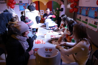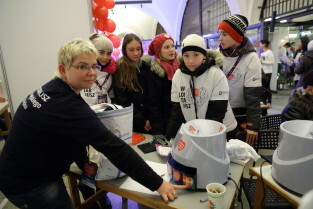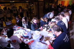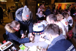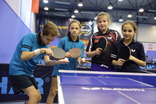 Gdańsk. 26 finał Wielkiej Orkiestry Świątecznej Pomocy. Nz. Polski Związek Tenisa Stołowego w swoim centrum przy ul. Meissnera 3 zorganizował akcję "Tenisiści Stołowi dla WOŚP".