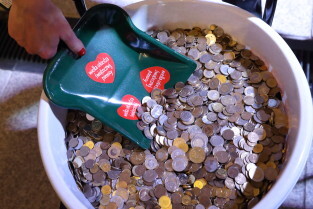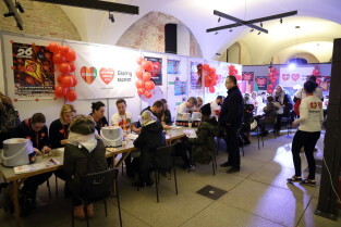 Gdańsk. 26 finał Wielkiej Orkiestry Świątecznej Pomocy. Nz. Centrala WOŚP w Zbrojowmi.